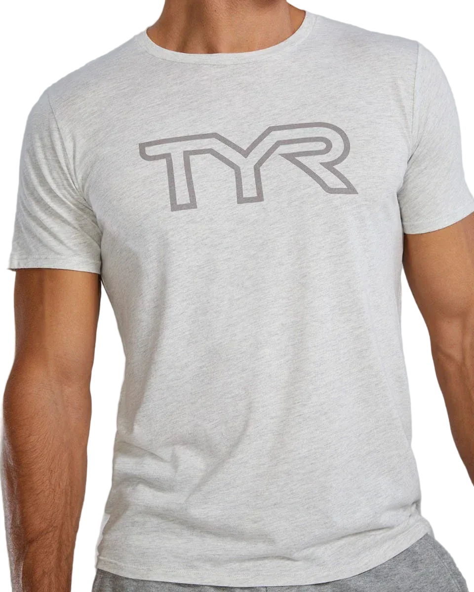 The TYR Men's Ultrasoft Lightweight Tri Blend Tech Tee - Big Logo takes you from the gym to the pavement seamlessly.